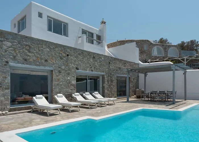 A villa 15 perc autóútra helyezkedik el az Agiosz sztefanoszi tengerpart területétől és 10 percre a Mikonosz Repuloter repülőtértől. Ez ingatlan a Church of St George közelében található. A Velencei negyed a villa szomszédságában van.